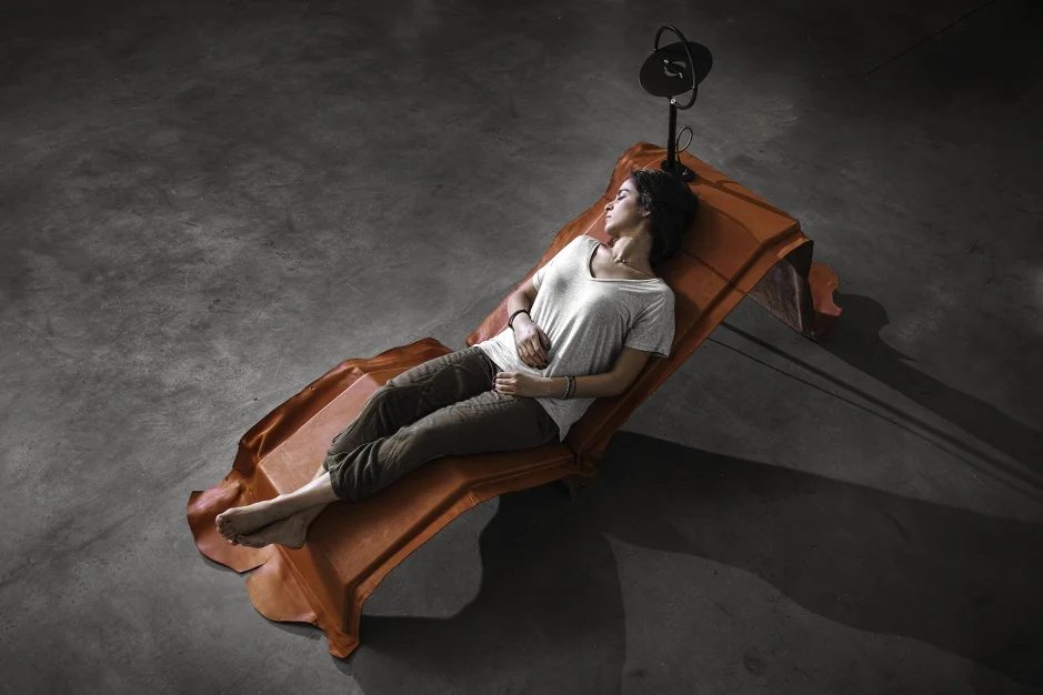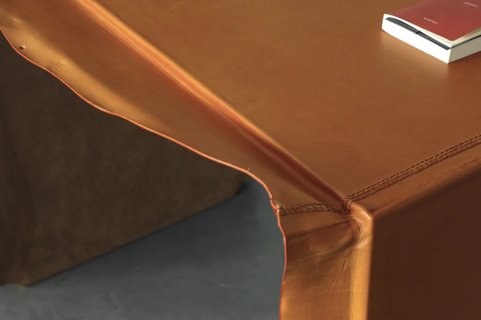 JM Design Gallery presented ‘Leatherscapes’ by Lebanese designer Marc Baroud, a series of objects designed around the dimensions of a single sheet of leather.