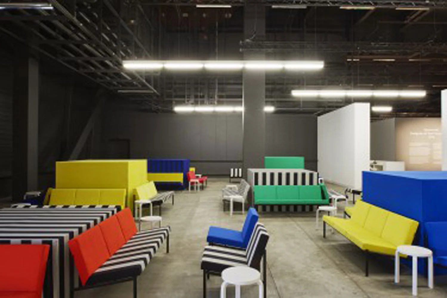 Design Miami’s Collectors Lounge designed by Berlin-based architecture practice Kuehn Malvezzi featuring Artek’s modernist Kiki Collection, by Finnish designer Ilmari Tapiovaara in 1960 and textiles designed by Raf Simons for Danish manufacturer Kvadrat.