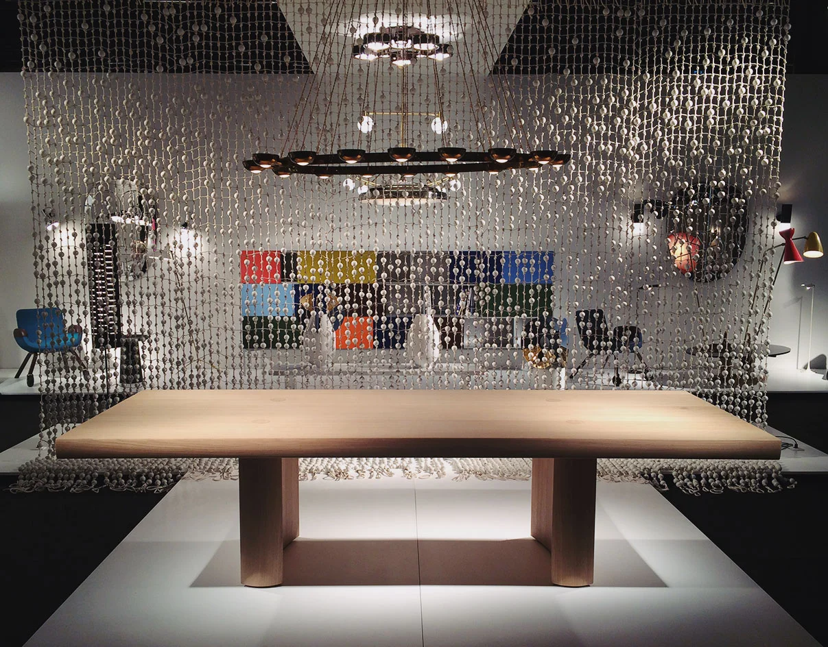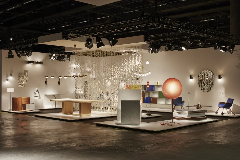 Galerie Kreo presented a massive oak table by Barber & Osgerby next to a large-scale curtain by Hella Jongerius from the UN North Delegates’ Lounge, and an extraordinarily colorful Maarten Van Severen ‘Bibliothèque’