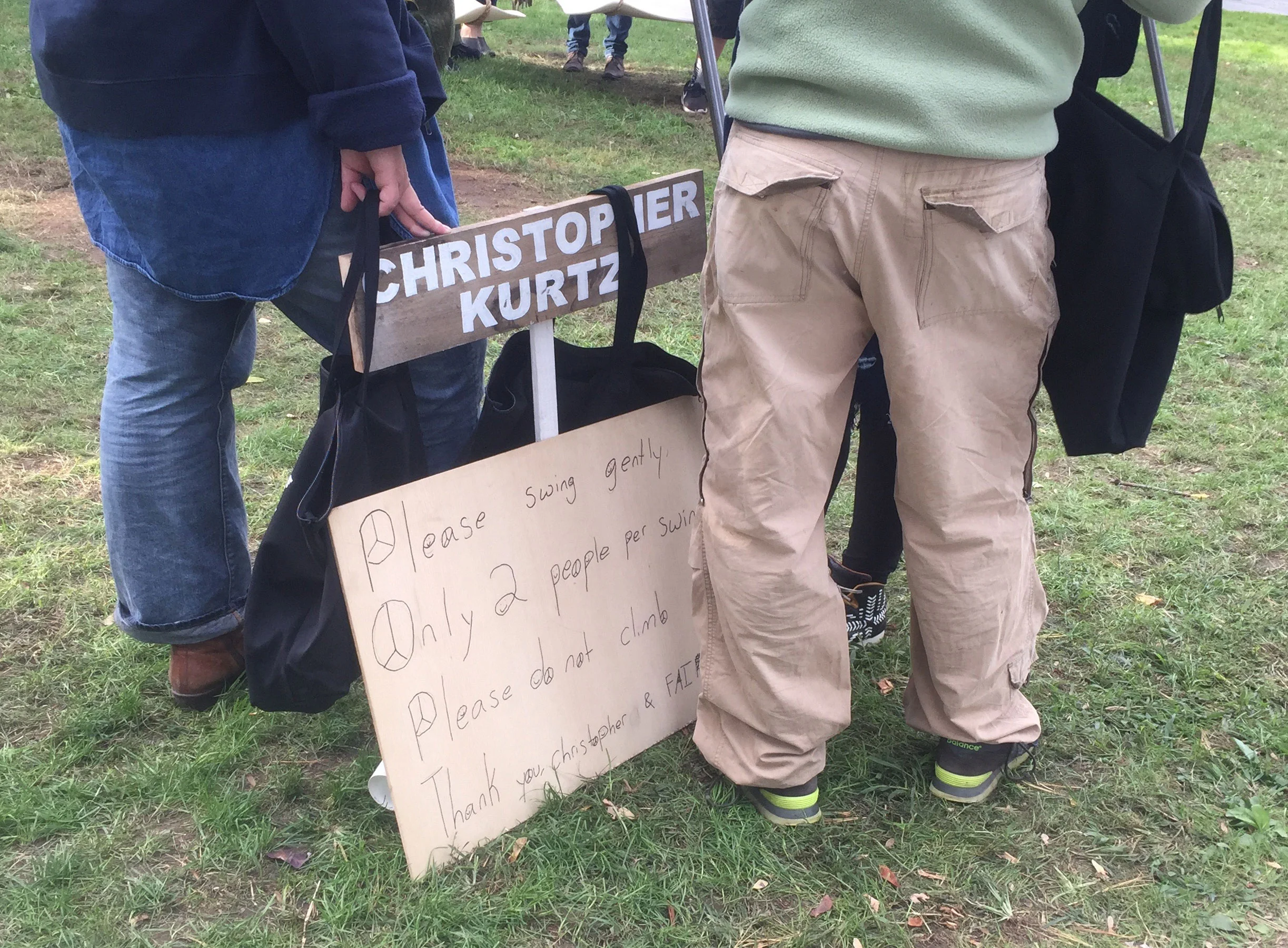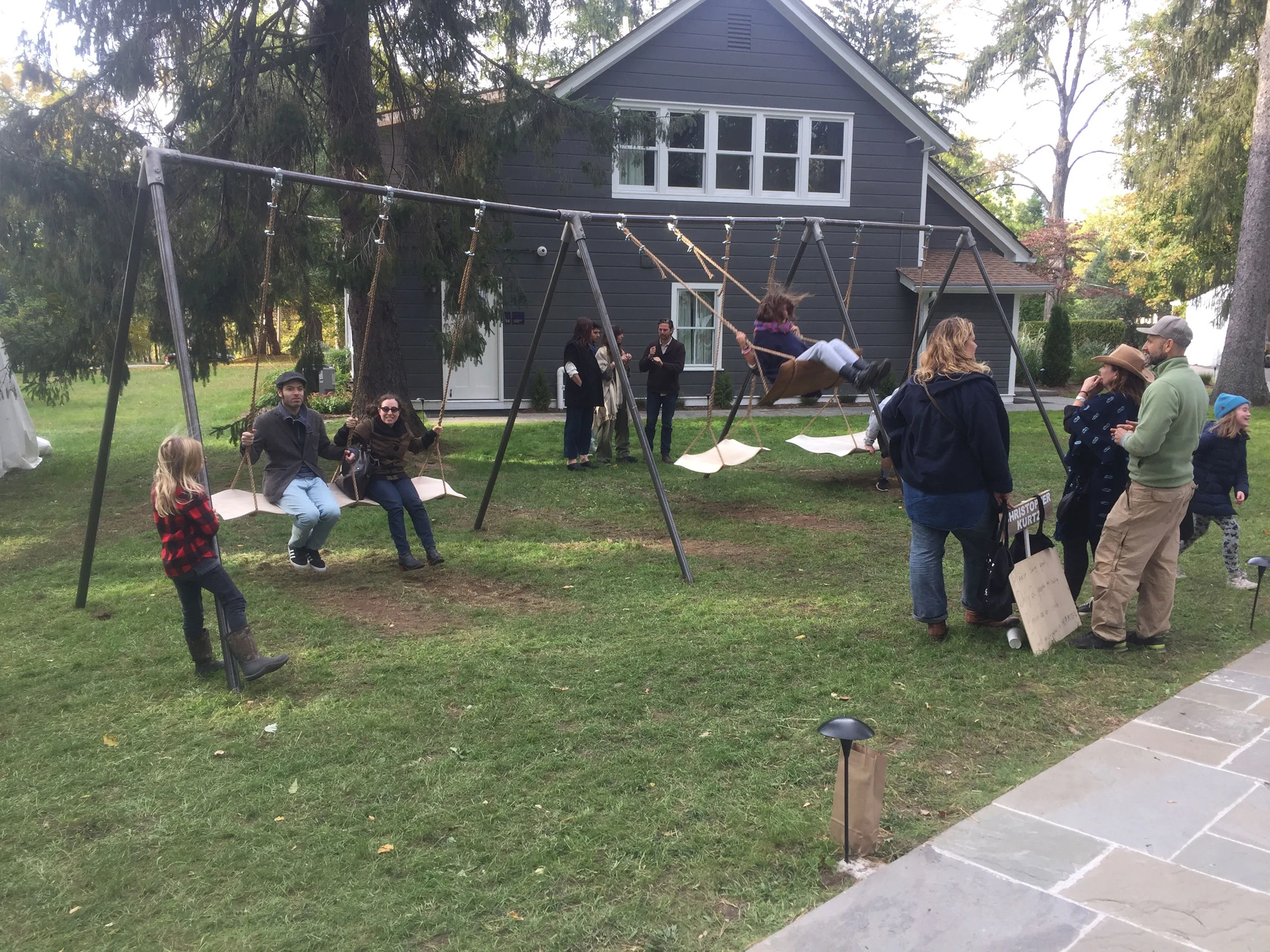 Christopher Kurtz flipped the script—instead of having a tent with a booth showing his handcrafted furniture, he made an interactive statement that was probably a godsend for the parents who brought the kids to the fair.