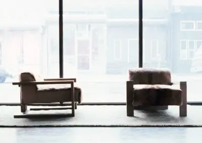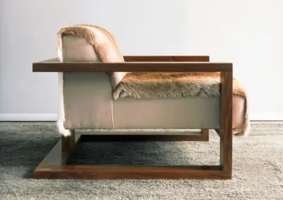 At home in Aspen, LA or NYC, our Caribou Lounge is actually upholstered with Coyote Fur. Secured in an exposed hardwood frame, this is a chair that is equally beautiful from any angle. The structure floats in a solid American black walnut frame which contrasts assuredly with the variations of the fur. Imposing and comfortable at the same time, the Caribou model is one of our most beloved luxury lounge chairs.