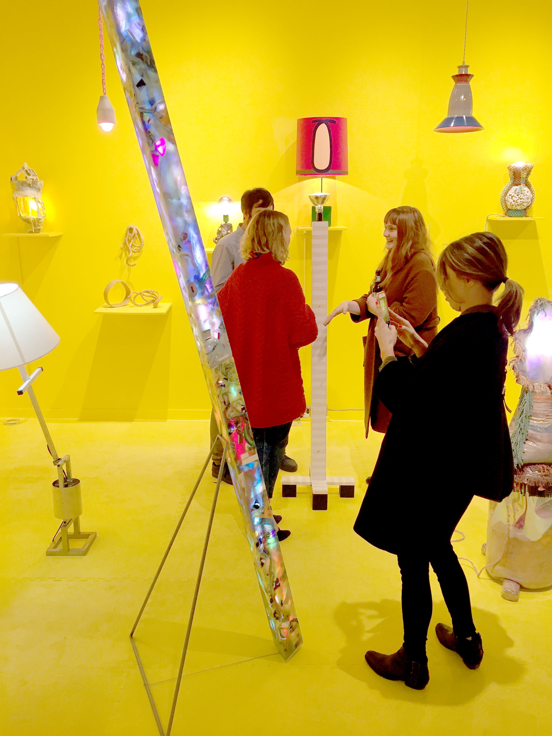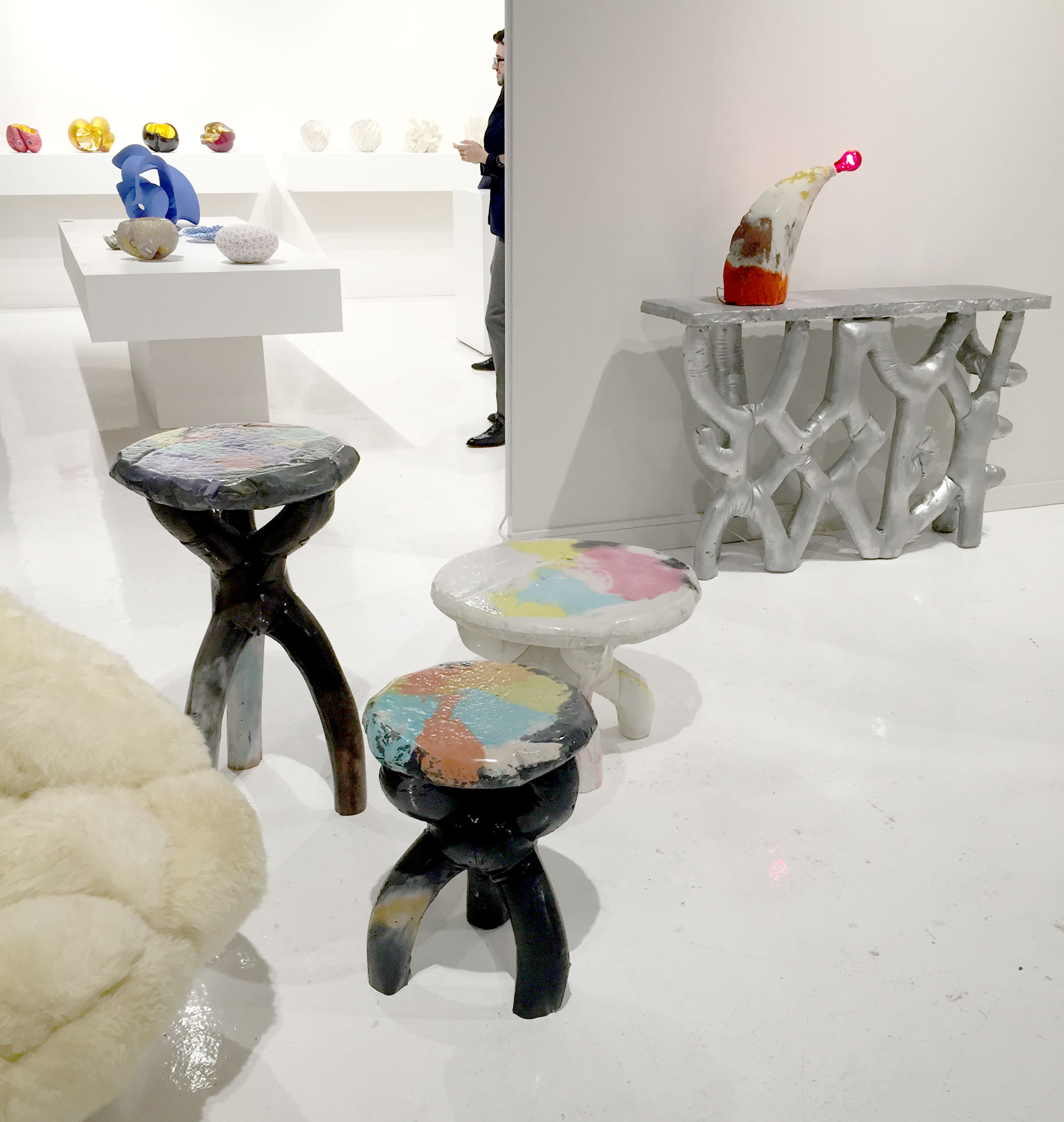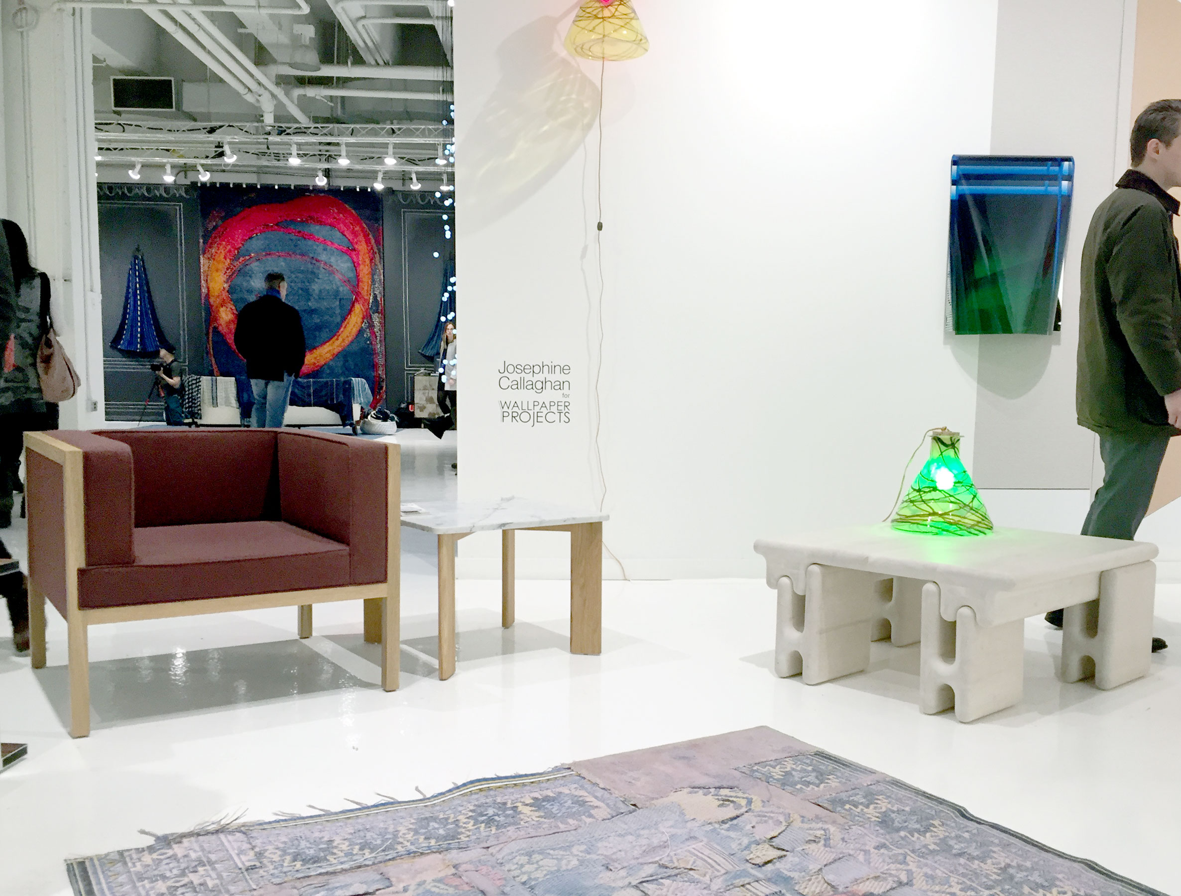 An overview of the show, featuring booths by Sight Unseen and Cadillac—who I’m sure gave a generous donation … the GM-owned brand moved from the Michigan town they’re named after to NYC a couple of years ago.