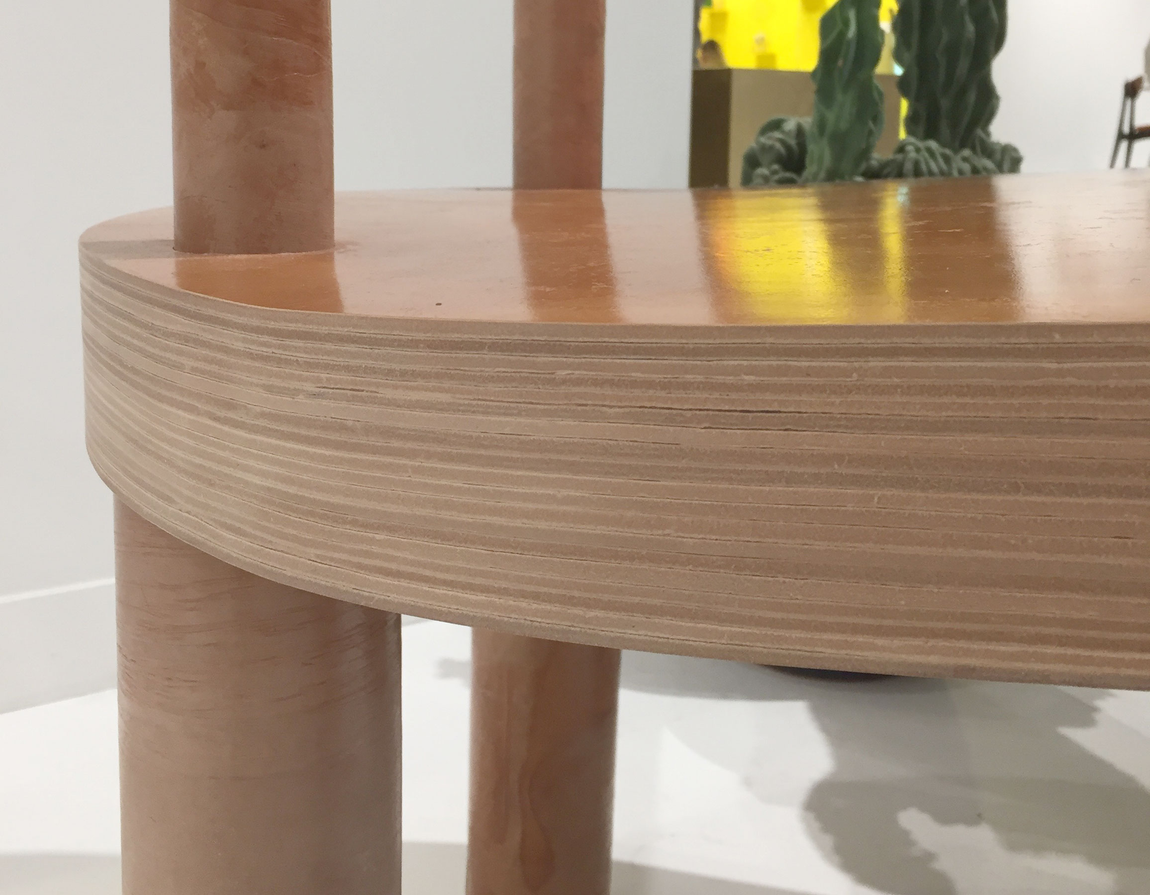 I really liked the funky coffee table by Vonnegut / Kraft, left. It is made from solid hardwood, even though it might appear to be resin or even concrete.